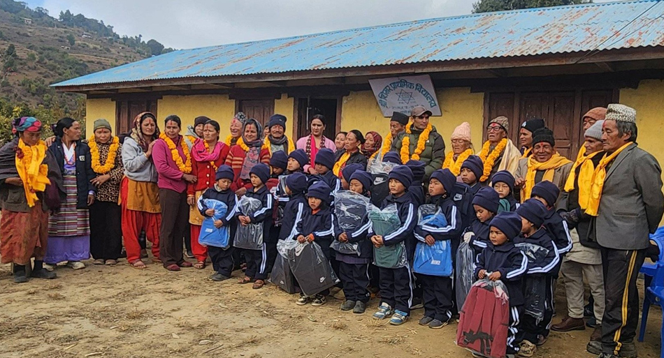 खोटाङ, ९ पुस । दिक्तेल रुपाकोट मझुवागढी नगरपालिका–११ खार्मीस्थित सोतीमा सञ्चालित शिखर आधारभूत विद्यालयका विद्यार्थीलाई ट्र्याकसुट, टोपी र झोला उपलब्ध गराइएको छ । खार्मीस्थित सोती स्थायी घर भइ हाल वैदेशिक रोजगारीको सिलसिलमा फ्रान्समा रहनुभएका पुष्पकुमार राईले उपलब्ध गराउनुभएको रकमले खरिद गरिएको ट्र्याकसुट, टोपी र झोला मङ्गलबार विद्यार्थीलाई उपलब्ध गराइएको हो ।