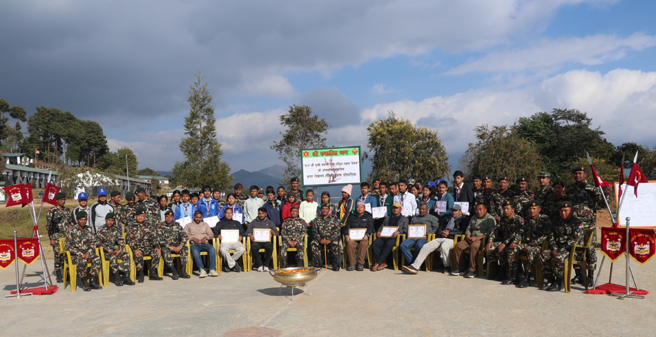 खोटाङ, १२ पुस । नेपाली सेनाको रणभीम गण मुडे ब्यारेक खोटाङले आयोजना गरेको हाजिरीजवाफ प्रतियोगितामा सरस्वती माध्यमिक विद्यालय दिक्तेल प्रथम भएको छ । मुडे ब्यारेकले ३०४ औँ पृथ्वी जयन्तीको अवसर पारेर आयोजना गरेको माध्यमिक विद्यालयस्तरीय हाजिरीजवाफ प्रतियोगितामा जिल्लाका चारवटा माध्यमिक विद्यालयलाई पछि पार्दै सरस्वती मावि दिक्तेलले प्रथम उपाधि जितेको हो ।
