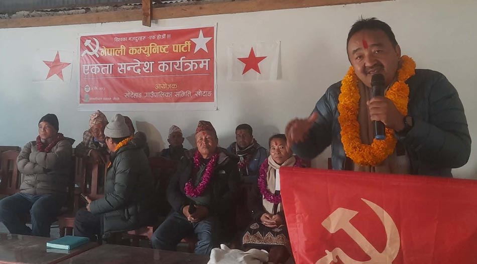 खोटाङ, २५ पुस । नेपाली कम्युनिष्ट पार्टीका केन्द्रीय सदस्य राजेन्द्रकुमार राईले नेपालमा समाजवादी कार्यक्रम लागू गर्न नेपालका सबै कम्युनिष्ट पार्टीहरुबीच एकता गरिएको बताउनुभएको छ । खोटाङको खोटेहाङ गाउँपालिका पार्टी समितिले शुक्रबार वाप्लुखामा आयोजना गरेको पार्टी एकता सन्देशसभालाई सम्बोधन गर्नुहुँदै नेकपाका नेता राईले यस्तो जानकारी दिनुभएको हो ।